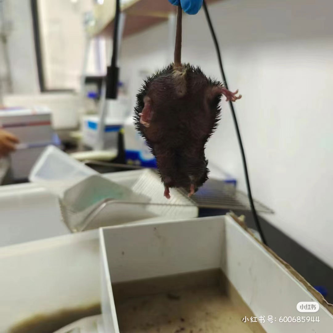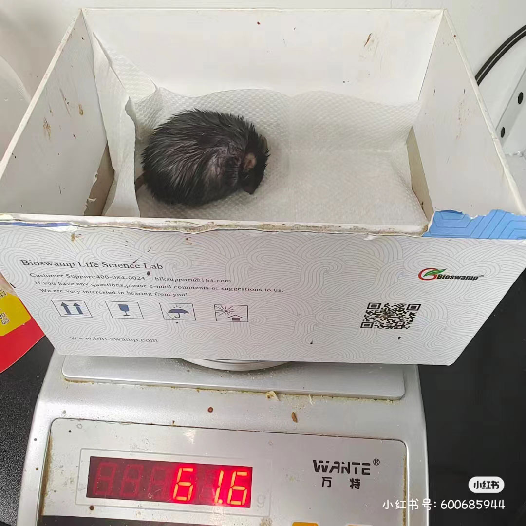 圖一圖二為高脂飼料喂養(yǎng)2周的小鼠情況;圖三圖四為高脂飼料喂養(yǎng)4周的小鼠情況;圖五圖六為小鼠過(guò)度肥胖后的身體狀態(tài)