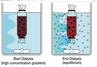 一、透析 透析就是利用小分子能夠通過,而大分子不能夠通過半透膜的原理,將大小分子量物質(zhì)分開的一種實(shí)驗(yàn)手段;在膜兩側(cè)存在濃度差時(shí),溶質(zhì)從高濃度的一側(cè)(通常是樣品置于透析袋中)擴(kuò)散通過半透膜到低濃度的一側(cè)(透析溶液一側(cè))直至膜兩邊濃度達(dá)到平衡。如下圖所示: ...